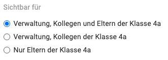 Gruppierte Beiträge auf bestimmte Klassen oder Kurse werden anschließend dem Kollegium und den Eltern nur im Bereich der Klasse oder des Kurses selbst angezeigt.